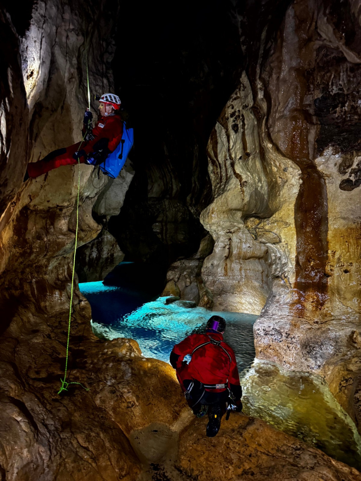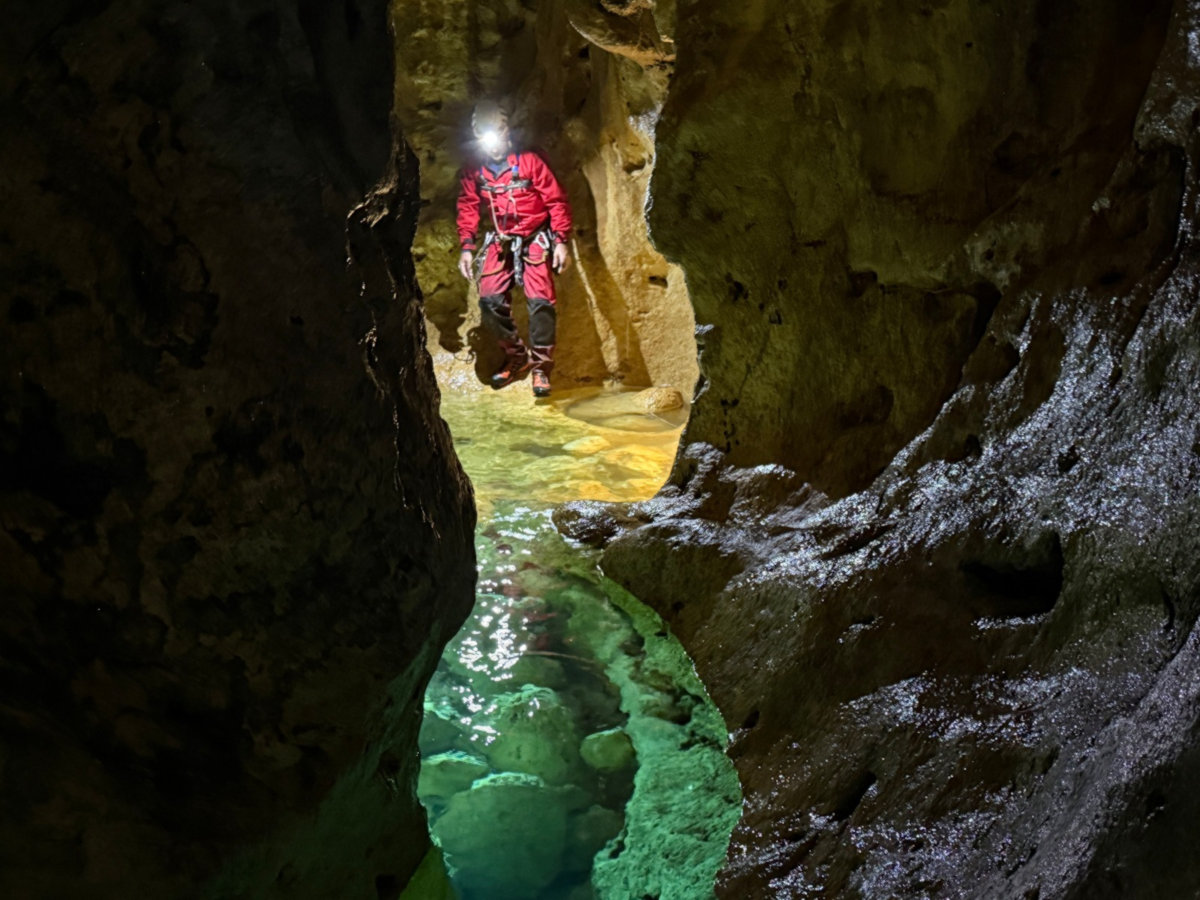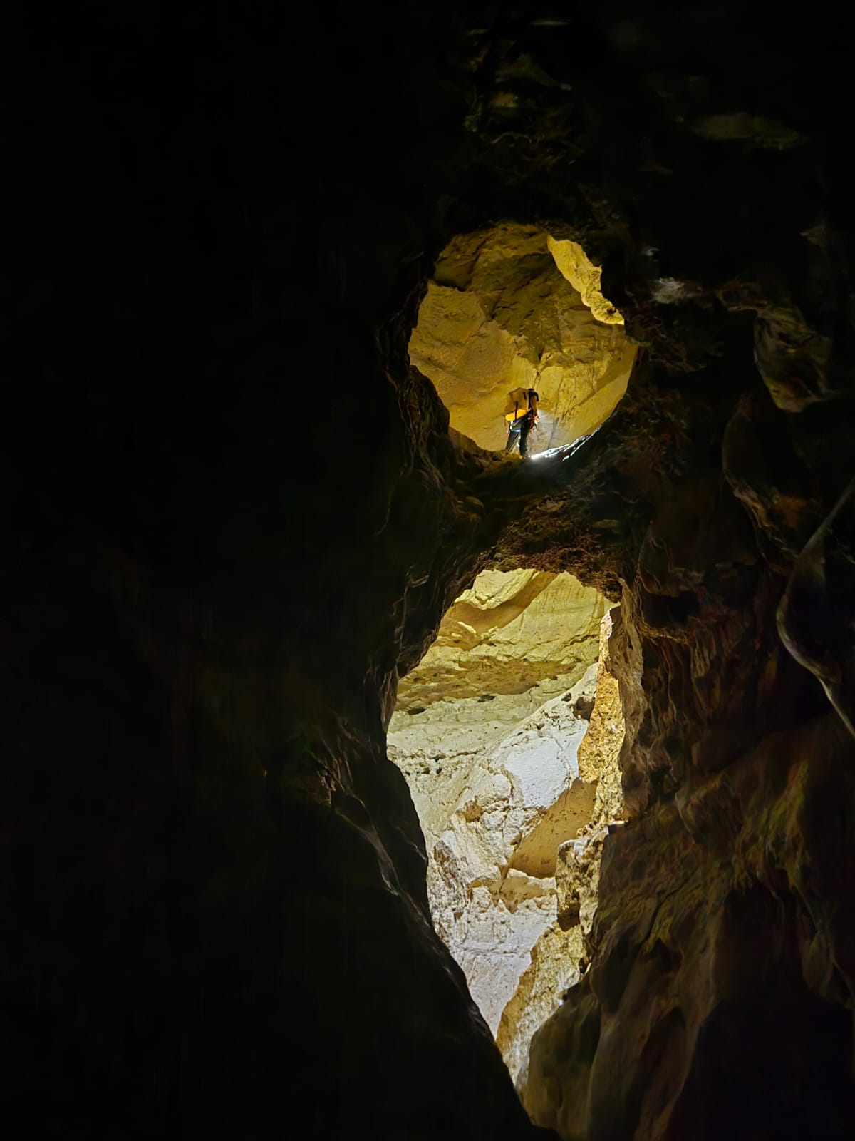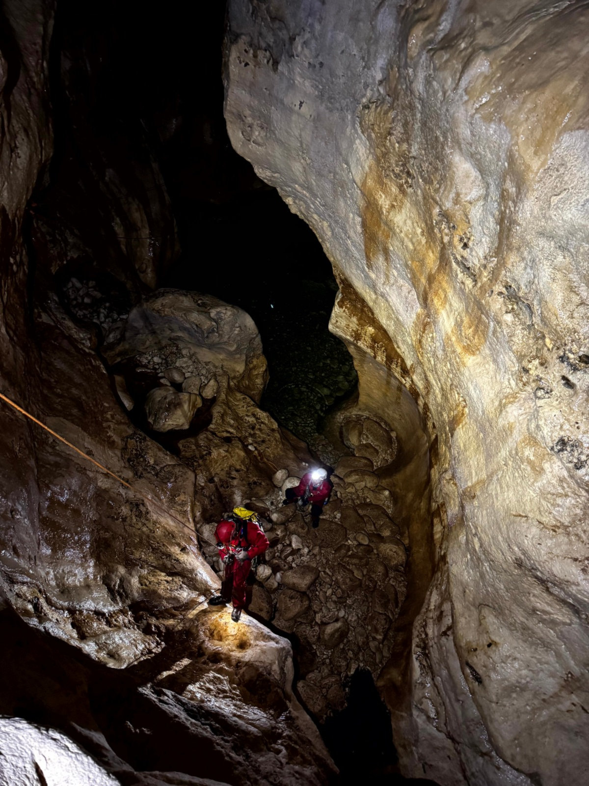 La grotte de Kosisilita, elle, ne déçoit pas. Entre topographie, prise d'images, observations géologiques, collectes bio et équipement des verticales, la progression avance : derrière le puits de 9 mètres, la grotte continue, de belle taille, et l'arrêt se fait dans une galerie parsemée de vasques d'eau, où l'écho de nos cris résonne au loin. Ça continue, et bien, mais un point calme nos ardeurs : les traces de mise en charge sont évidentes sur une grande partie du parcours et si la cavité continue sur le même profil pseudo-horizontal, l'engagement va vite atteindre un point problématique. Mais nous n'en sommes pas encore là, et nous savourons pour l'heure pleinement le plaisir de la découverte.