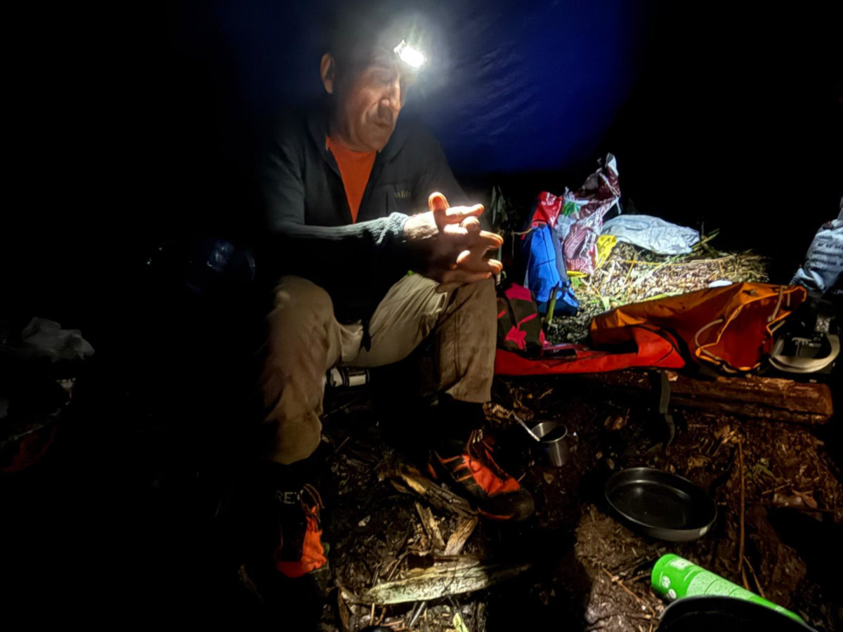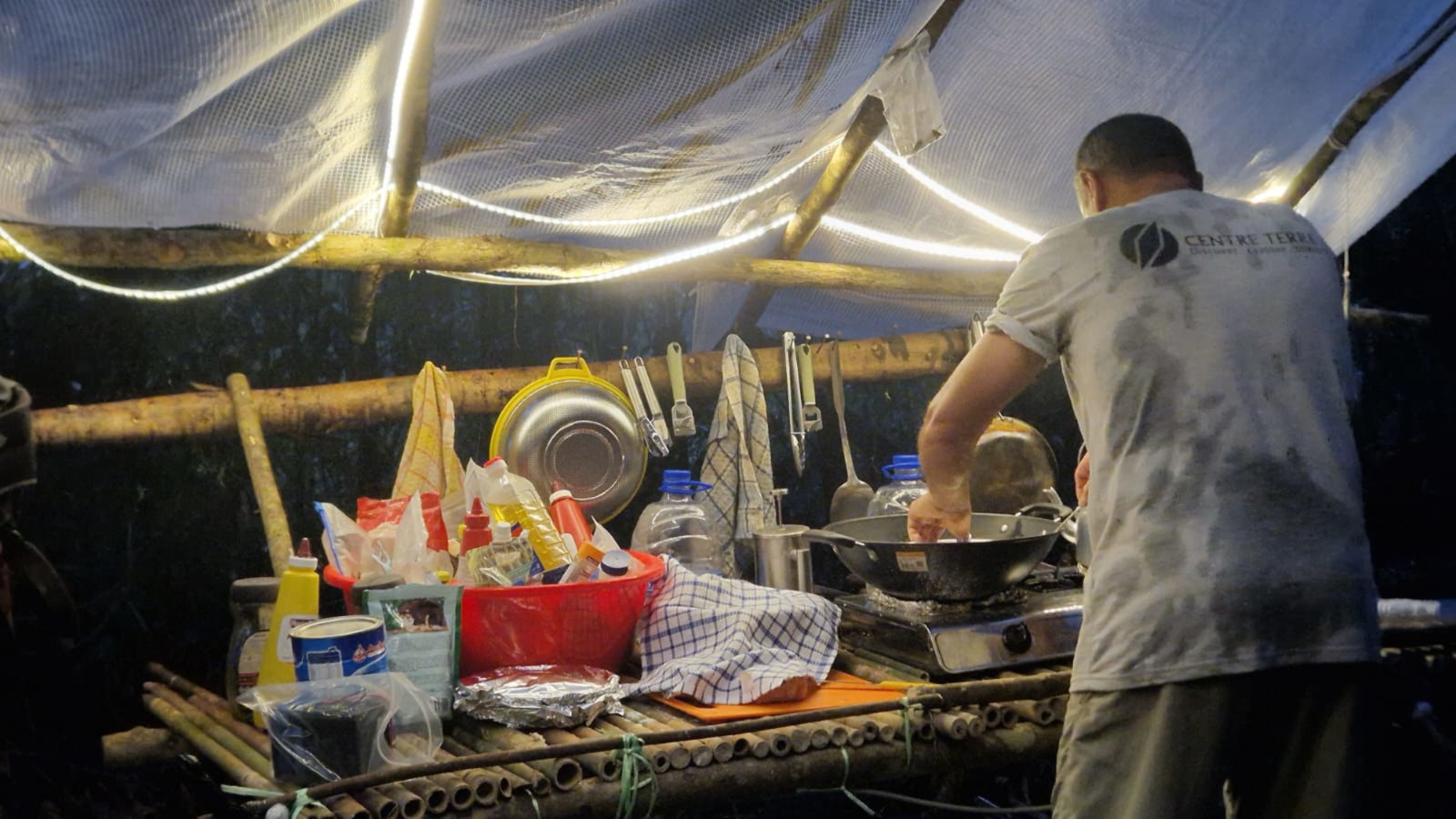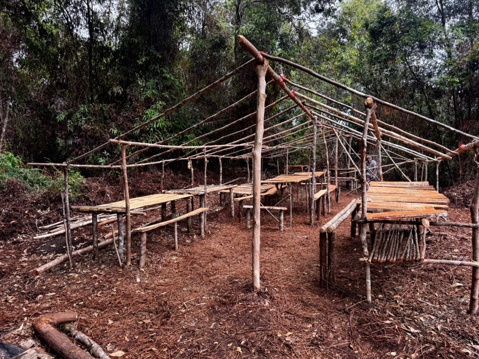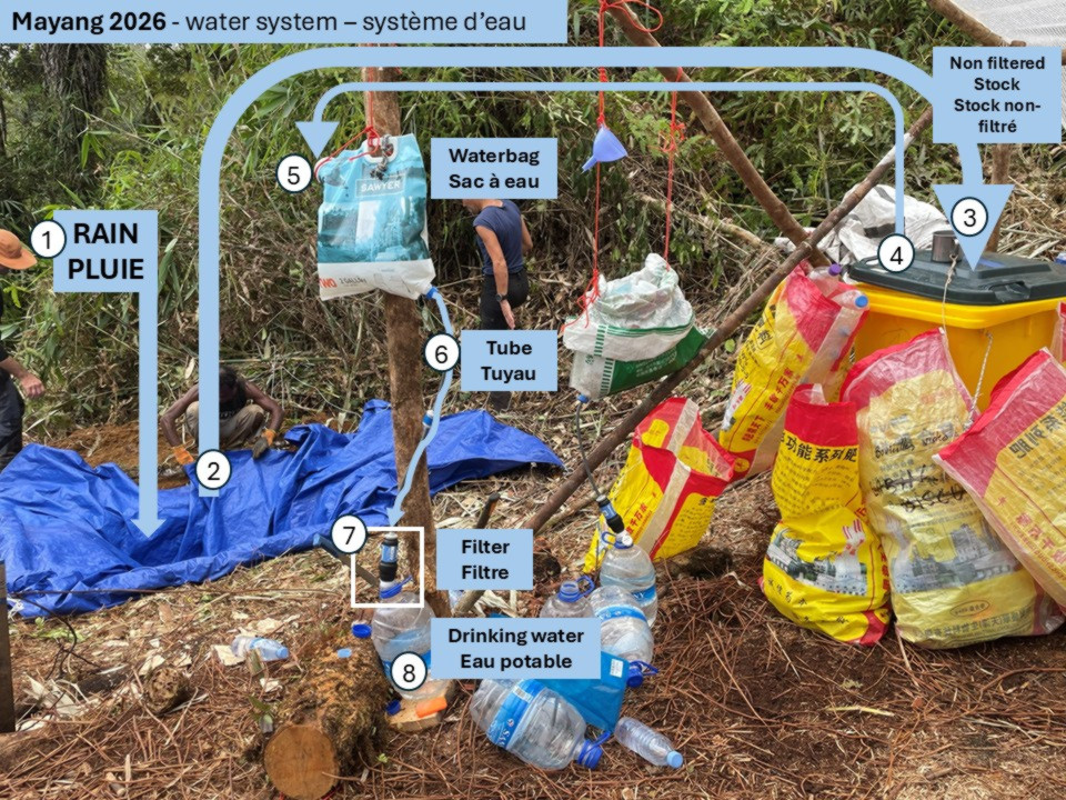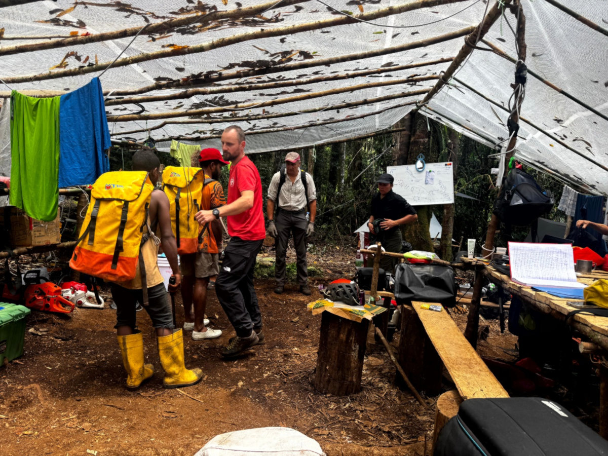 Pour le tout nouveau camp 3 encore sans abri, cette pluie n'est pas la bienvenue ! D'autant plus que le gain en altitude – ce camp étant situé à plus de 1400 m – rend le secteur beaucoup plus humide et froid que le camp précédent. Après un important défrichage et l'abatage de nombreux arbres, tout juste est-il possible d'installer une bâche temporaire sur la toute nouvelle DZ pour gagner un minimum de confort.