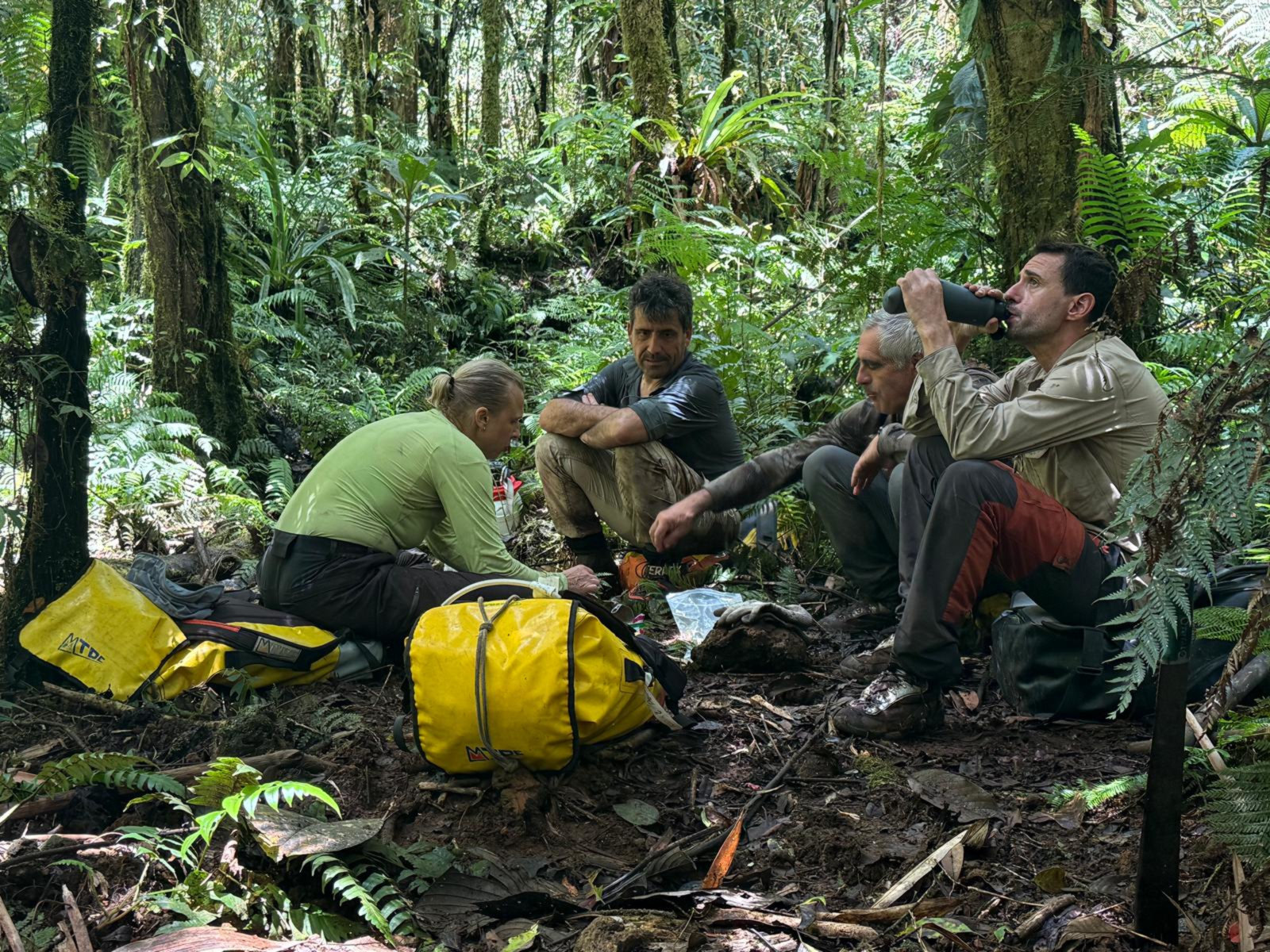 Pour Jessica, Tom, Bogdan et Laurent, la mission est autre : 3 km à vol d'oiseau séparent les camps 2 et 3. Une jonction semble donc possible et souhaitable. Surtout pour Thomas, l'un des papous présent sur le Camp 3, qui a laissé ses affaires dans l'hélico. Elles ont été récupérées par Nolan, l'un des papous du Camp 2. Ils s'attellent donc à la taille d'un sentier de jonction et se rendent compte, sans surprise, que les réalités du terrain vont transformer ces 3 km en beaucoup plus. Pour l'heure, cette première journée leur permet d'atteindre 2,5 km de développement, ce qui est déjà une belle avancée.