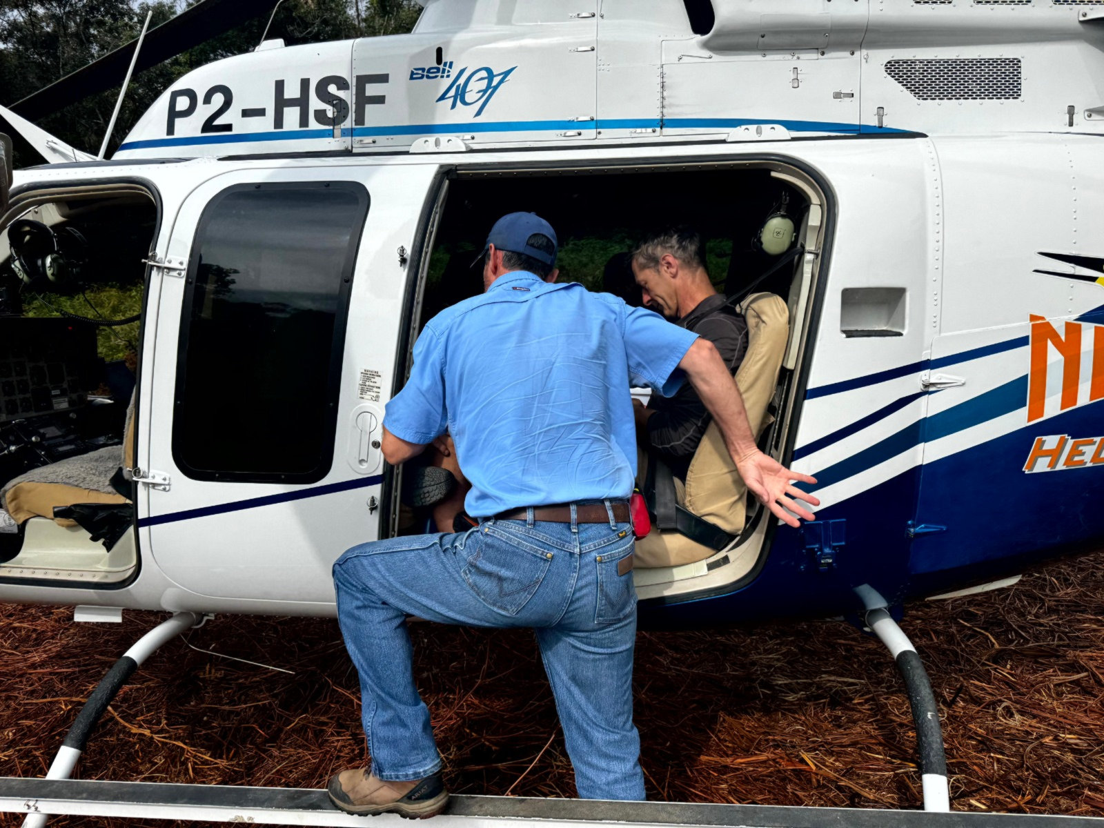 Dès 7h30, un plan de vol très compliqué, finement optimisé par Bernard pour économiser chaque minute de vol et mis en œuvre par les responsables de chaque camp, se déploie. Véritable composition musicale, cette manœuvre intègre plus de 25 mouvements aériens. L'enjeu ? Acheminer les nouveaux arrivants vers leurs camps respectifs, ramener les partants et leur matériel vers la DZ de Galuwé et si possible, déplacer le camp 1 vers une nouvelle zone toujours plus en amont pour mieux engager les équipes vers les hauts plateaux d'alimentation de Mayang.