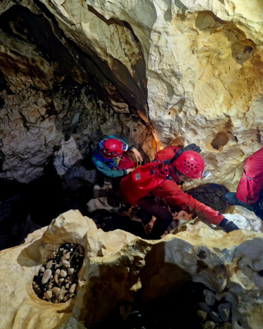D'autres conduits secondaires sont explorés au prix de rampings dans la boue et de passages de voûtes mouillantes, où seule le haut de la tête émerge, il faut se rendre à l'évidence : le gouffre de Gauunu n'est pas le grand trou rêvé. Cela n'empêche pas Sophie de faire de nombreuses observations géologiques et Yann R de ramener de belles images.