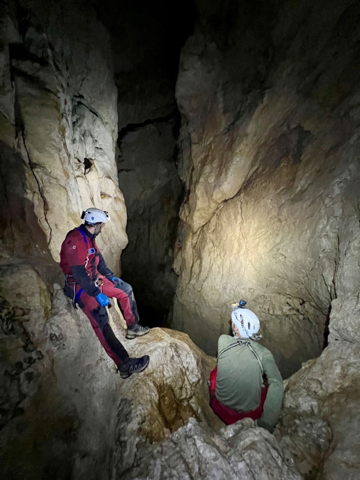 Nicolas est en tête, et trois heures et demie d'efforts soutenus seront nécessaires pour atteindre enfin le fond de la dépression. Là, au niveau de l'écoulement, l'atmosphère change. Un mélange de soulagement, d'excitation et de curiosité. Le moment est intense, presque suspendu. Puis très vite, l'exploration reprend : cap vers l'aval, puis vers l'amont. Il faut voir. Comprendre. Mesurer le potentiel.