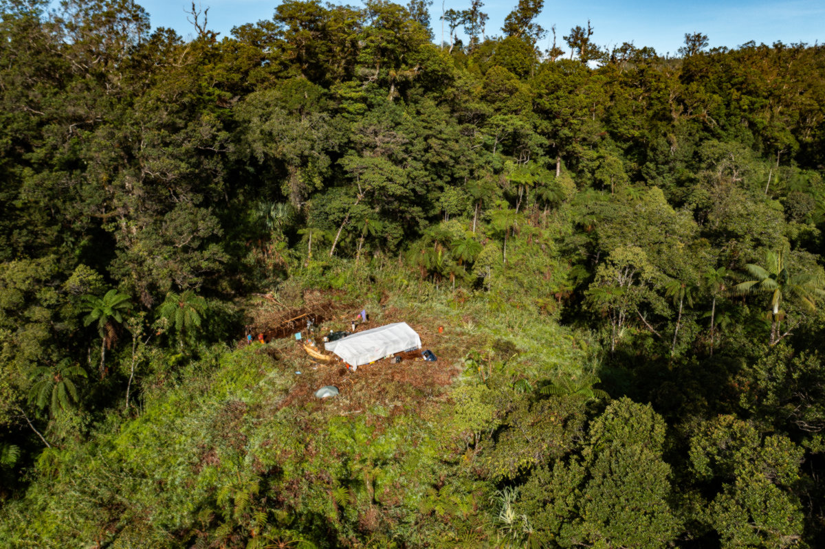 Pour le tout nouveau camp 3 encore sans abri, cette pluie n'est pas la bienvenue ! D'autant plus que le gain en altitude – ce camp étant situé à plus de 1400 m – rend le secteur beaucoup plus humide et froid que le camp précédent. Après un important défrichage et l'abatage de nombreux arbres, tout juste est-il possible d'installer une bâche temporaire sur la toute nouvelle DZ pour gagner un minimum de confort.