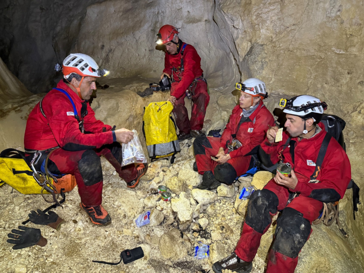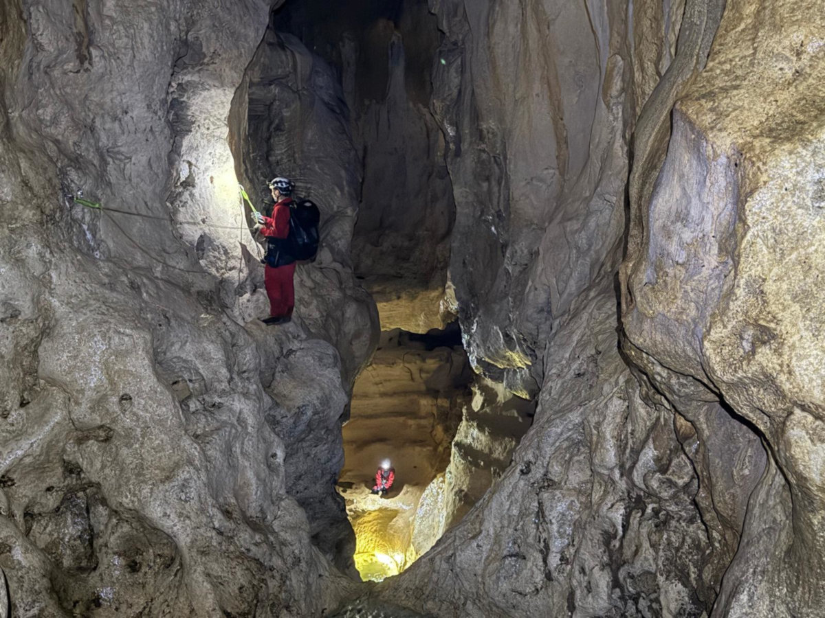 La grotte de Kosisilita, elle, ne déçoit pas. Entre topographie, prise d'images, observations géologiques, collectes bio et équipement des verticales, la progression avance : derrière le puits de 9 mètres, la grotte continue, de belle taille, et l'arrêt se fait dans une galerie parsemée de vasques d'eau, où l'écho de nos cris résonne au loin. Ça continue, et bien, mais un point calme nos ardeurs : les traces de mise en charge sont évidentes sur une grande partie du parcours et si la cavité continue sur le même profil pseudo-horizontal, l'engagement va vite atteindre un point problématique. Mais nous n'en sommes pas encore là, et nous savourons pour l'heure pleinement le plaisir de la découverte.